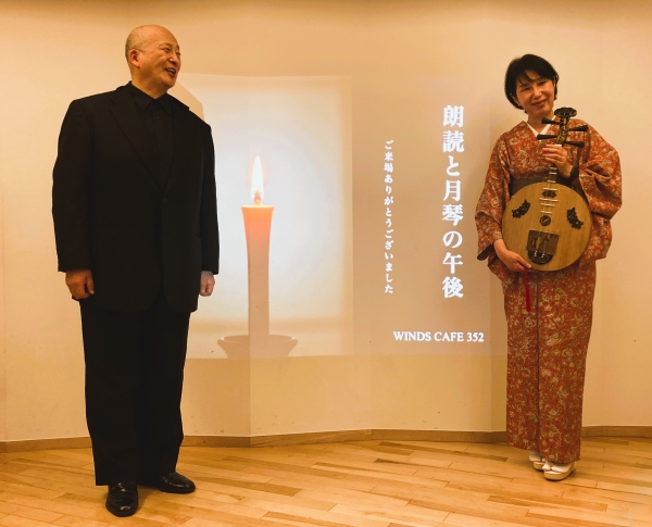 こんにちは、富塚研二です。4回目の参加となります WINDS CAFE 。今回は月琴奏者として活動されている永田斉子さんをお迎えしての朗読公演となります。